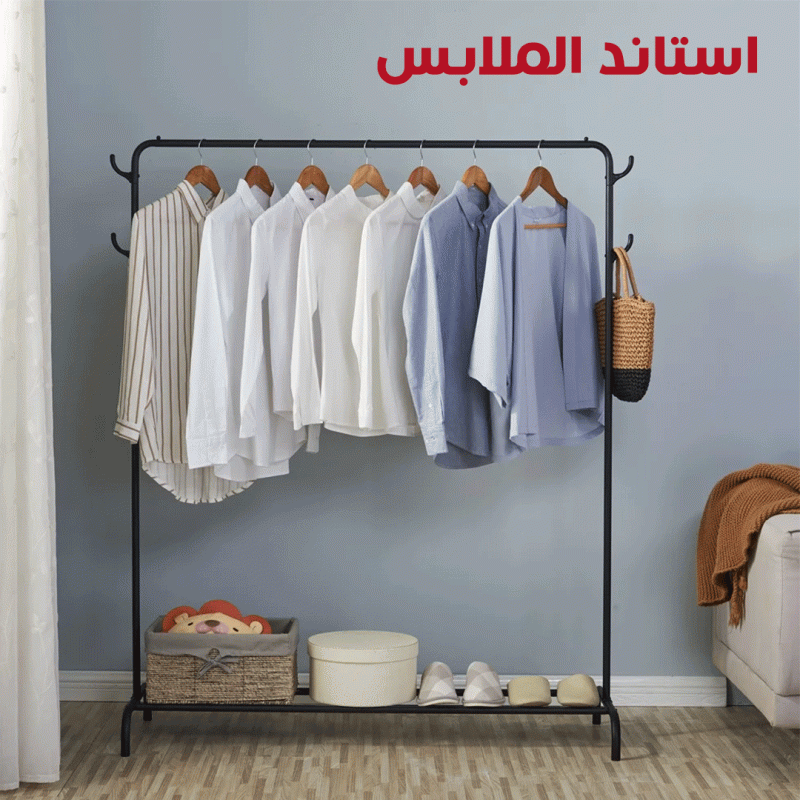 حامل ملابس مصنوع من الصلب المطلي مع خطافات جانبية